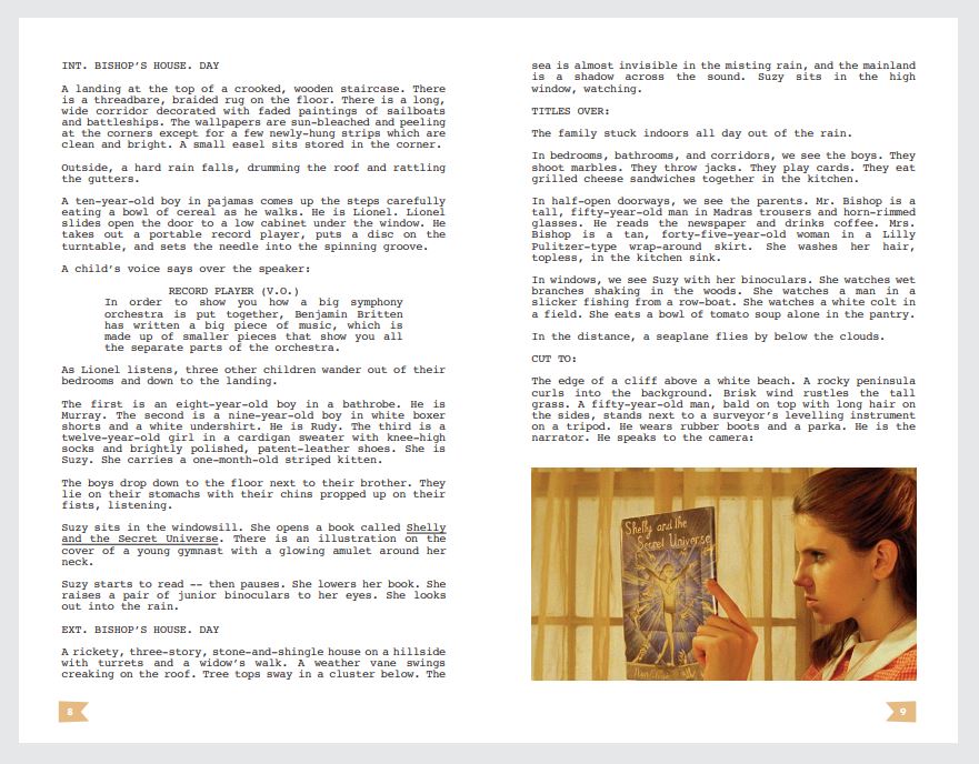 planned. The screenplay for Moonrise Kingdom did have dialogue in later pages